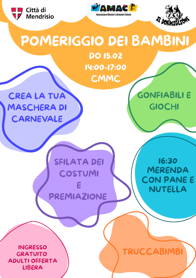 Domenica 15 febbraio , si terrà il pomeriggio dedicato ai bambini a partire dalle ore 14:00 al Centro Manifestazioni Mercato Coperto. Musica, giochi, gonfiabili e spettacoli per trascorrere un pomeriggio in allegria.