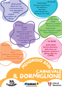 Venerdì 13 febbraio alle 14:30 con partenza da Villa Argentina si svolgerà il corteo dei bambini degli Istituti scolastici comunali di Mendrisio. Gli allievi con i loro docenti percorreranno le vie del nucleo storico per poi ritrovarsi in Piazzale alla Valle dove sarà offerta loro una merenda.